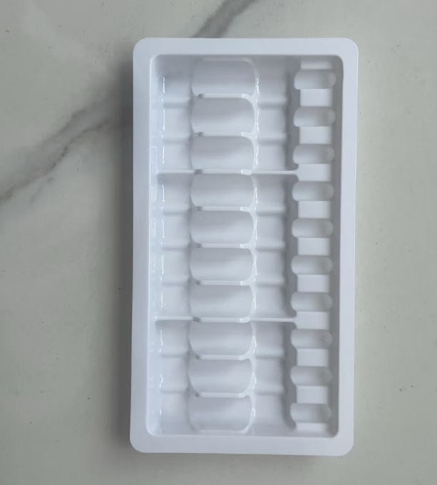 2 ml de personalização da bandeja de garrafas seladas de 10 peças. Disponível em dois tamanhos: 14,3*7,3cm ou 15,4*8.3cm. Atacado de 10 bandejas de plástico de PVC para 1 ml de vácuo da agulha de água, formando bandeja interna para medicina. Bandeja de garrafa de ampola personalizada para embalagens médicas, incluindo embalagens descartáveis de bolha para ampolas de 1 ml, 2ml, 3ml, 5ml e 10 ml.